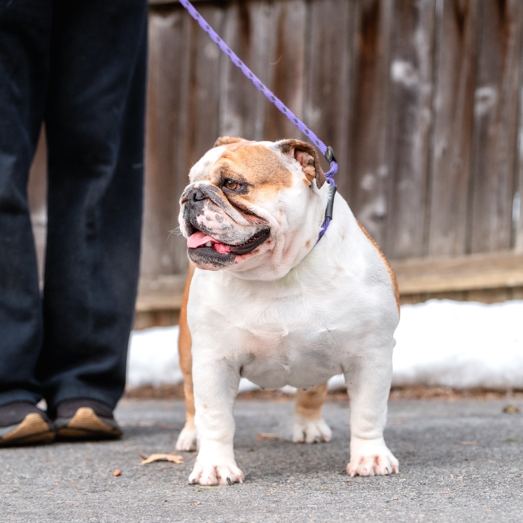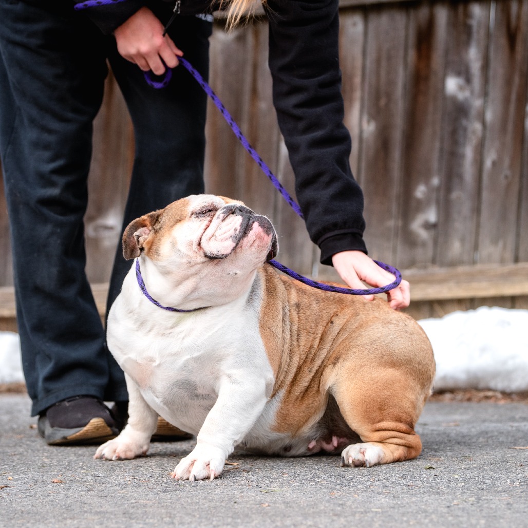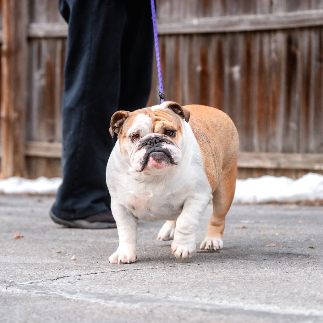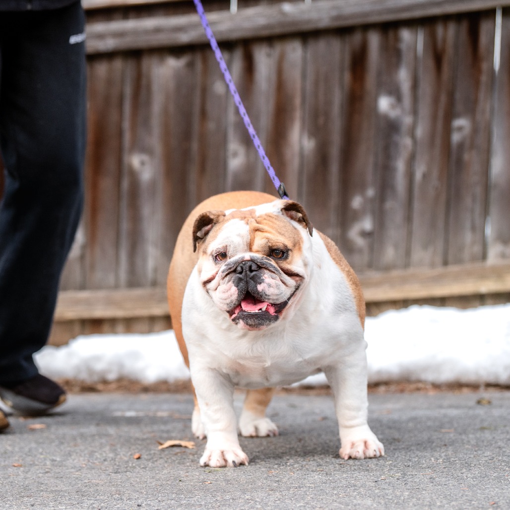 At 3 years old and 60 delightfully squishy pounds, Annabeth the English Bulldog is shaped like a warm baked potato and carries herself with the confidence of someone who knows she’s irresistible. Surrendered by a commercial breeder for not having puppies, Annabeth is now living her best retired-life — zero interest in marathons, mild interest in short strolls, and very high interest in snacks.
