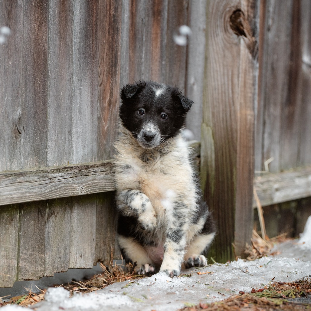 This group of 9‑week‑old Rough Collie / Border Collie mix puppies is ready to find their forever homes. All are black and white, currently weighing about 8–9 lbs, and full of everything you’d hope for in a young puppy.