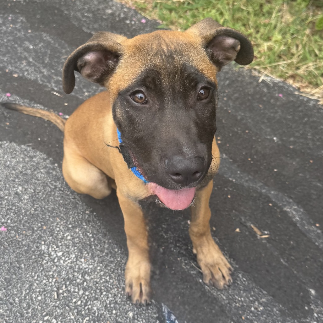 Apache came to us a bit unsure but he is so, so sweet. He is a very well-behaved little puppy that already knows sit. He has been very gentle-mannered and friendly with our volunteers. He has no issues handling. He would like a loving home that will continue working with him on that Malinois-famous confidence. He would love another social dog at home.