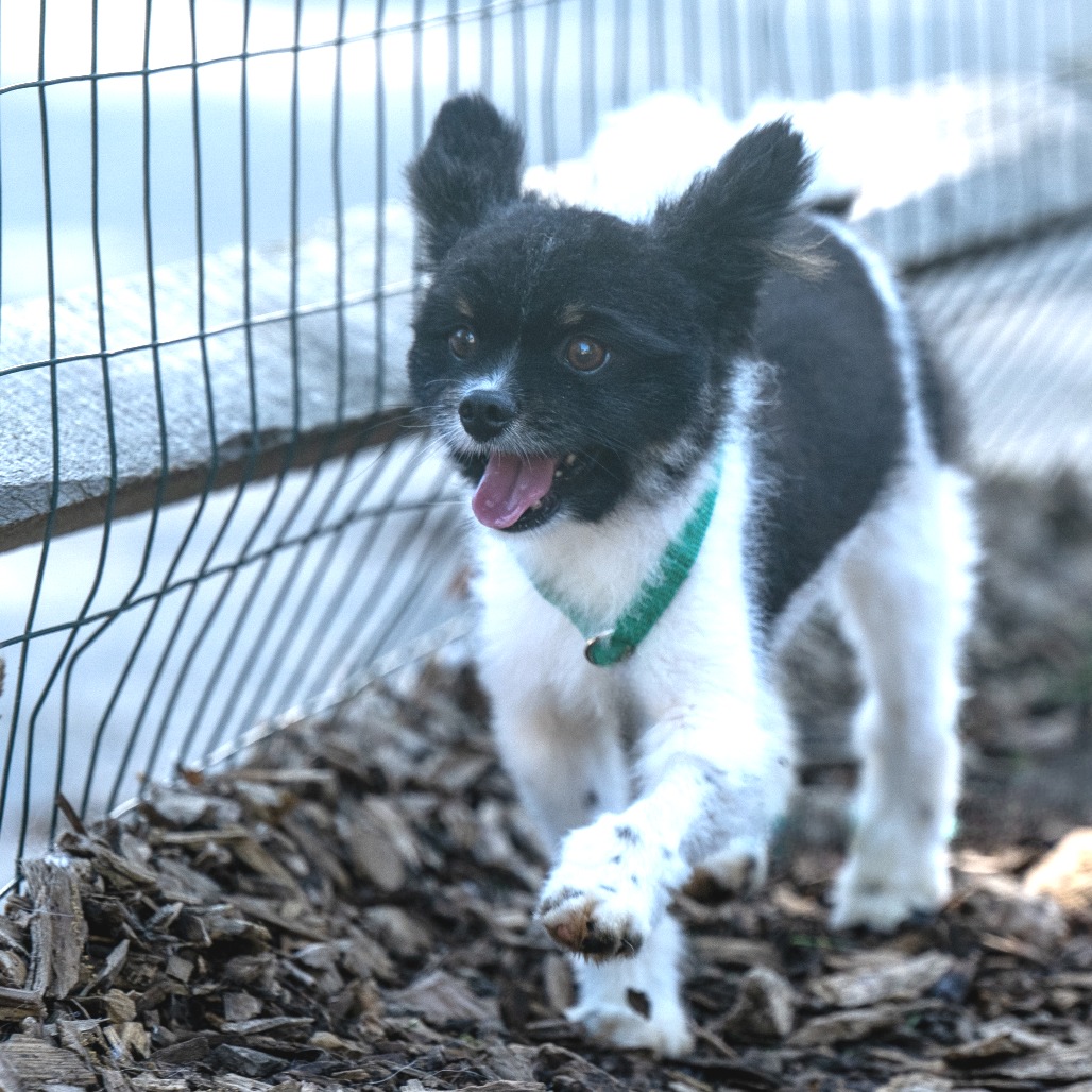 this handsome boy is an approx . 4 year old Pomeranian. He was surrendered to our care with 4 other dogs from a commercial breeder in Lancaster as he was no longer wanted. He is about 12 lbs.