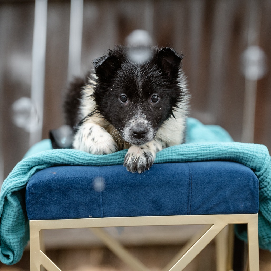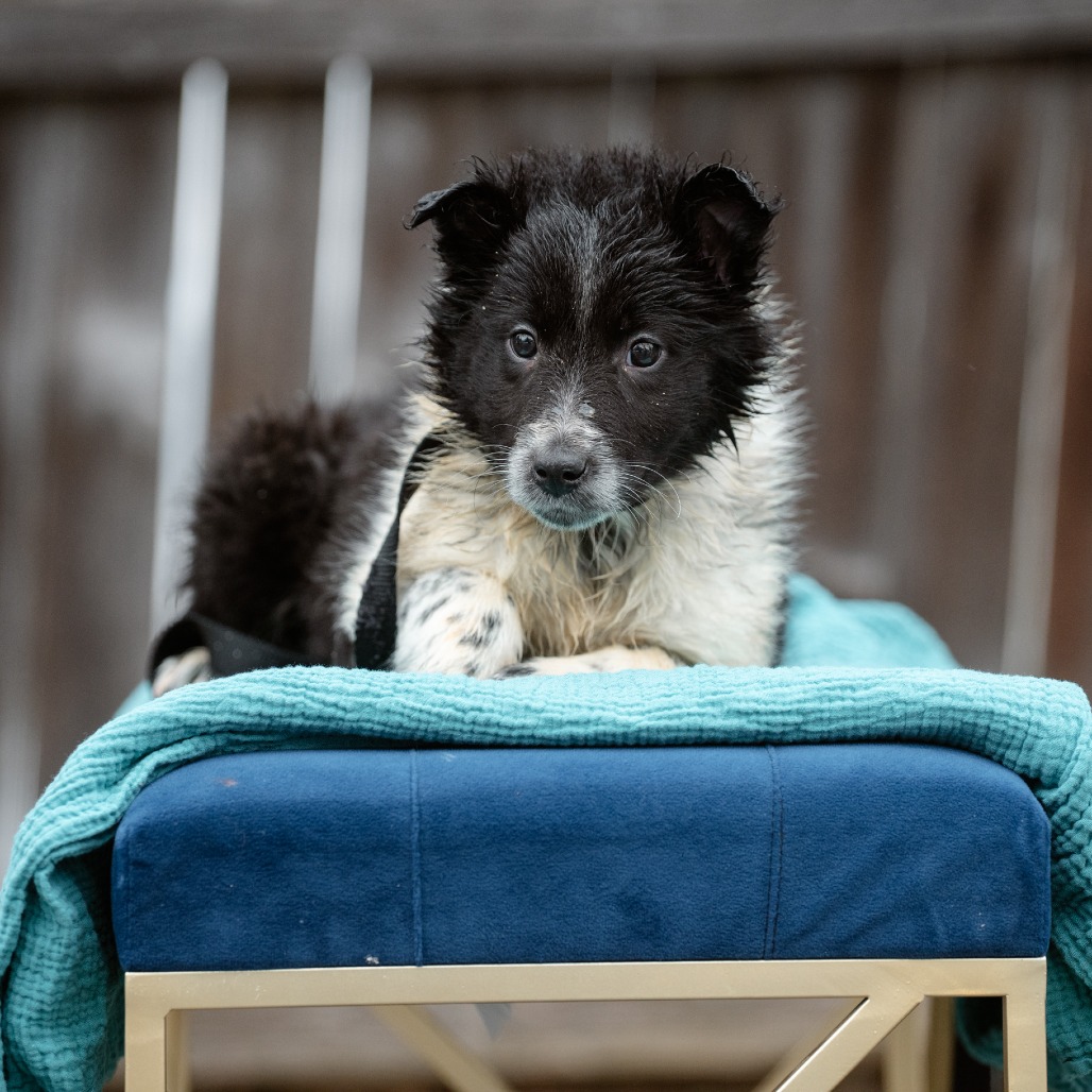 This group of 9‑week‑old Rough Collie / Border Collie mix puppies is ready to find their forever homes. All are black and white, currently weighing about 8–9 lbs, and full of everything you’d hope for in a young puppy.