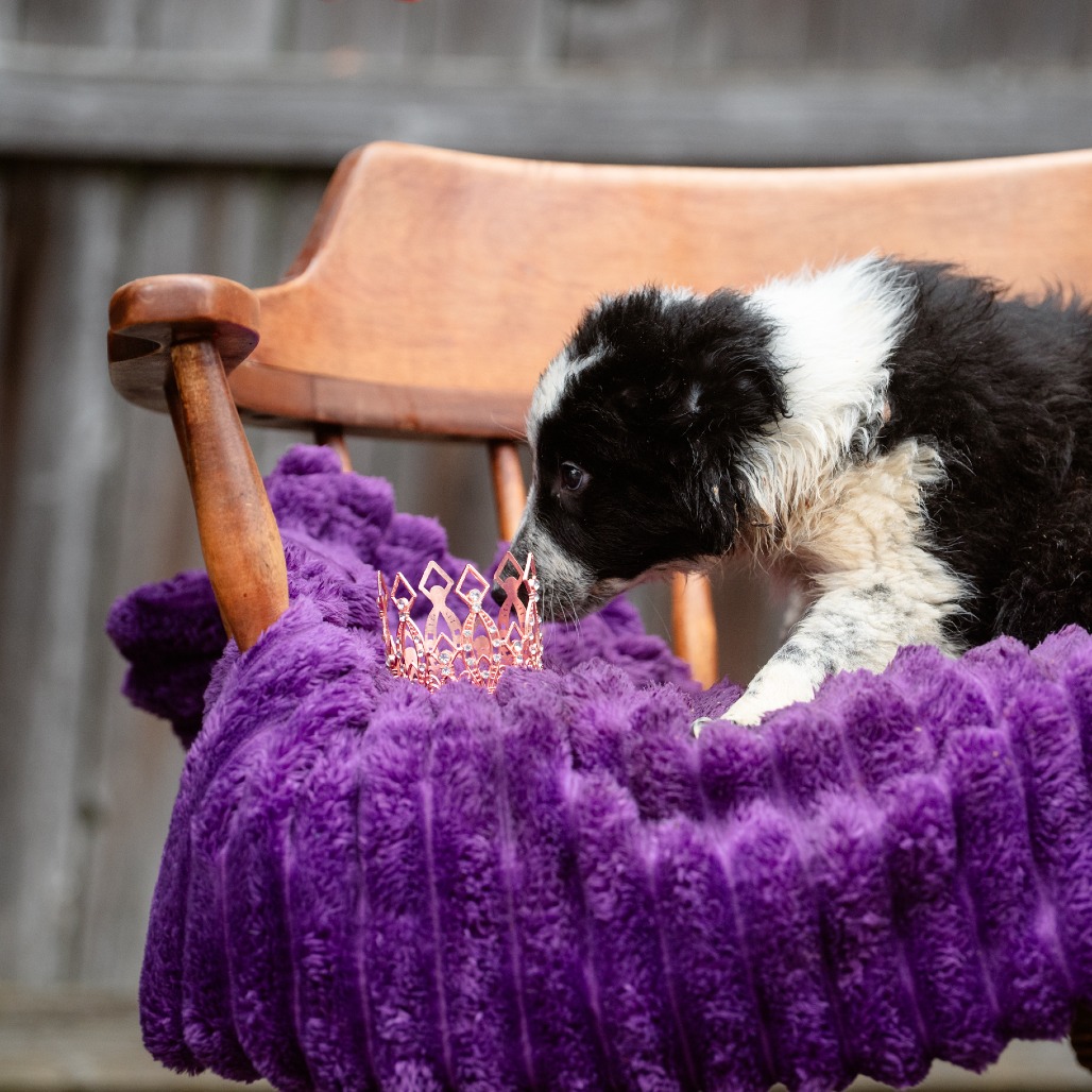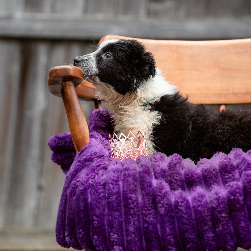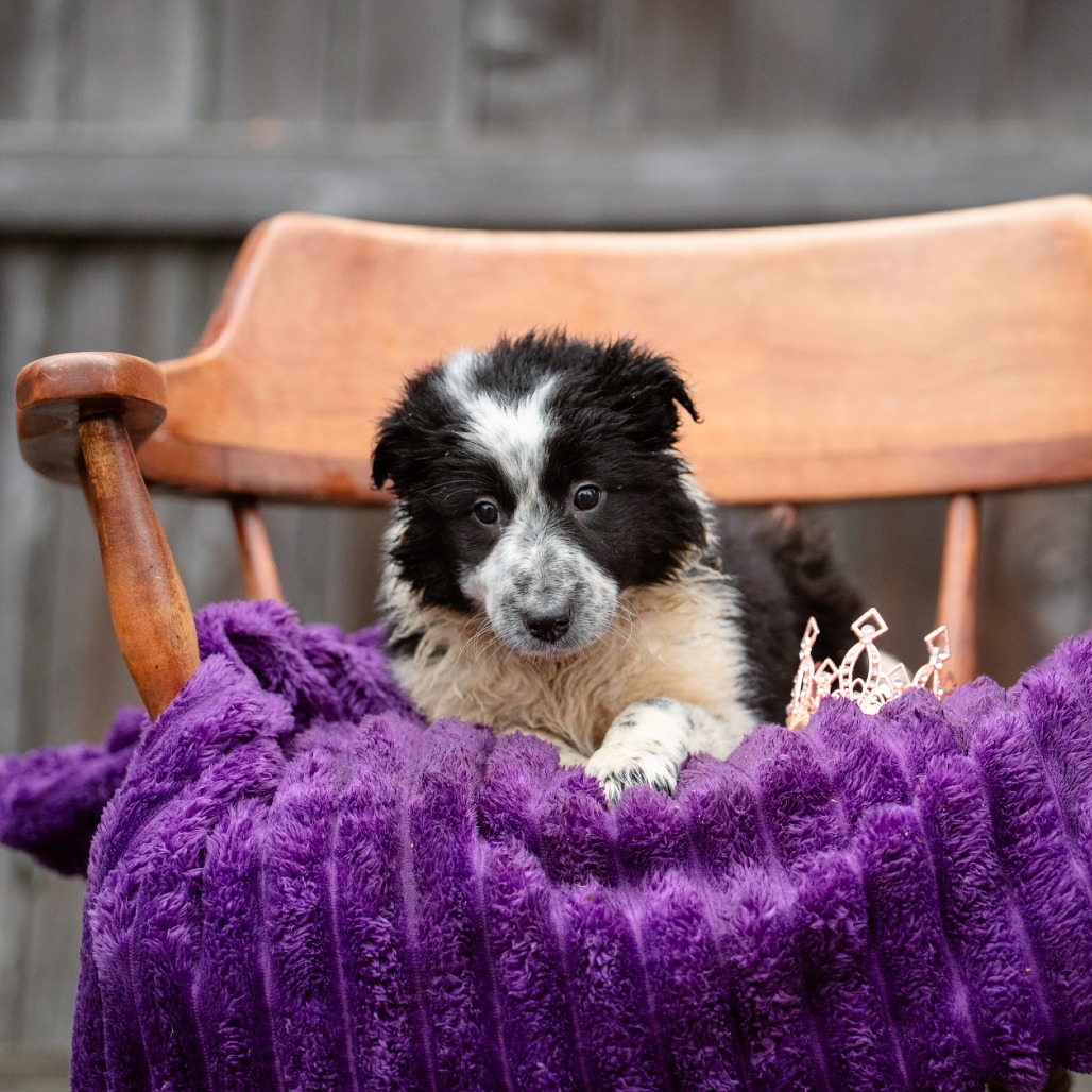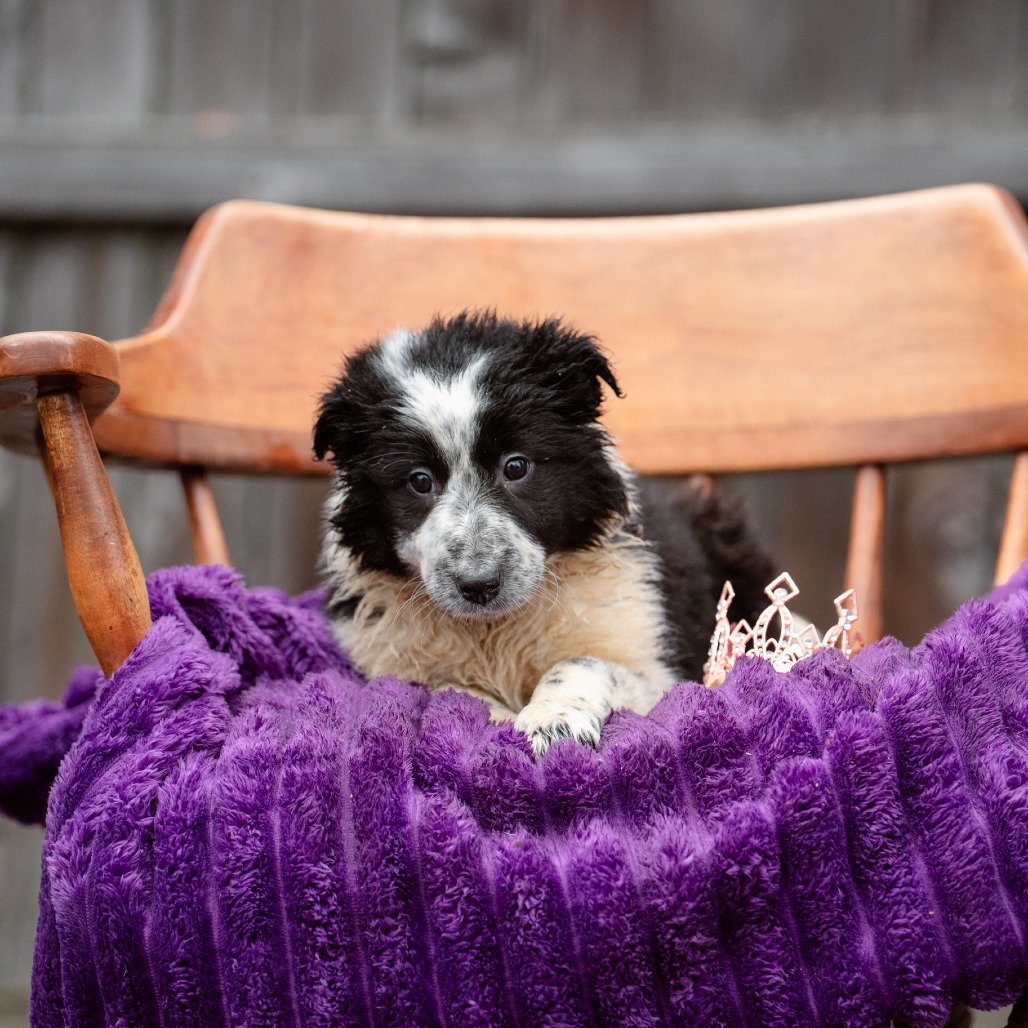 This group of 9‑week‑old Rough Collie / Border Collie mix puppies is ready to find their forever homes. All are black and white, currently weighing about 8–9 lbs, and full of everything you’d hope for in a young puppy.