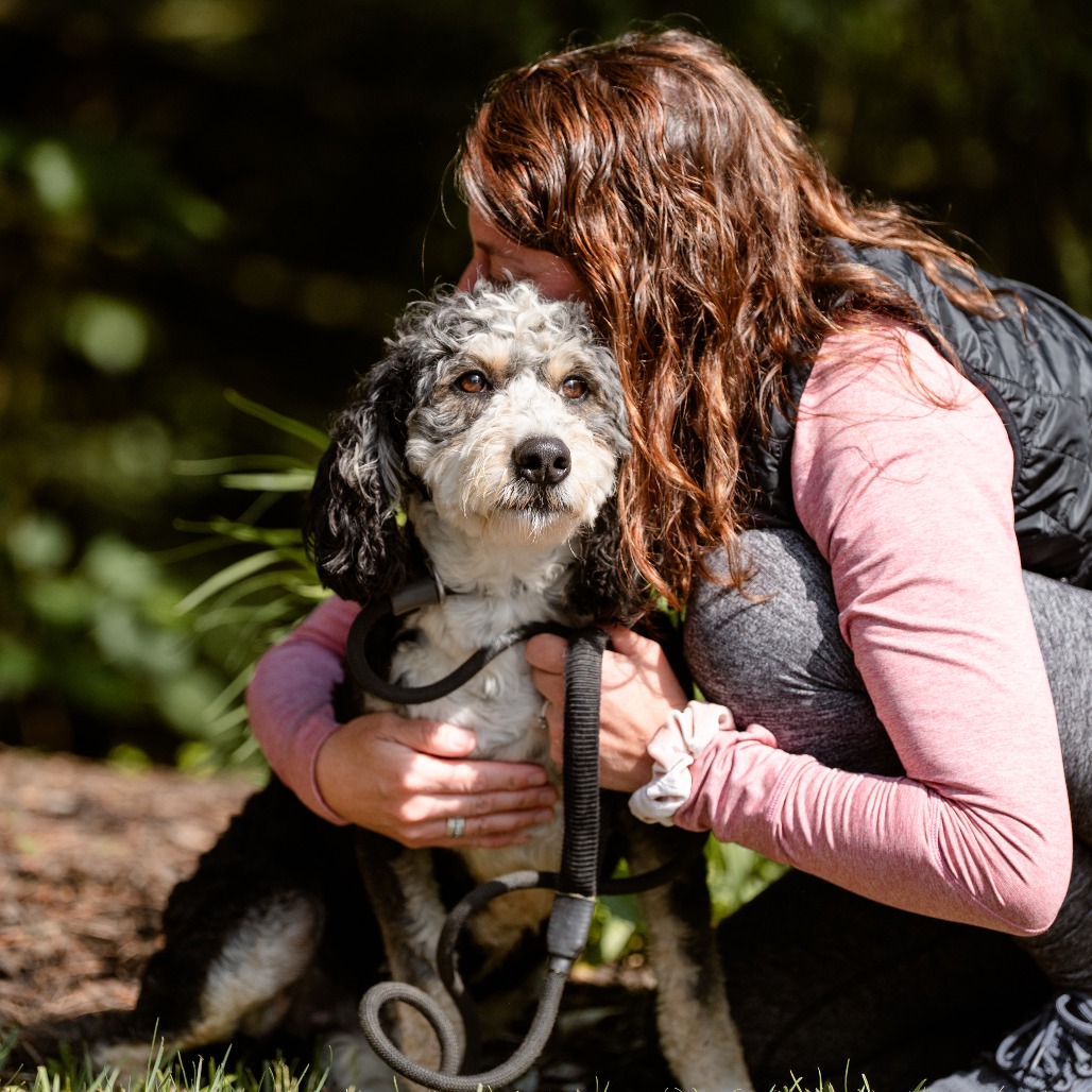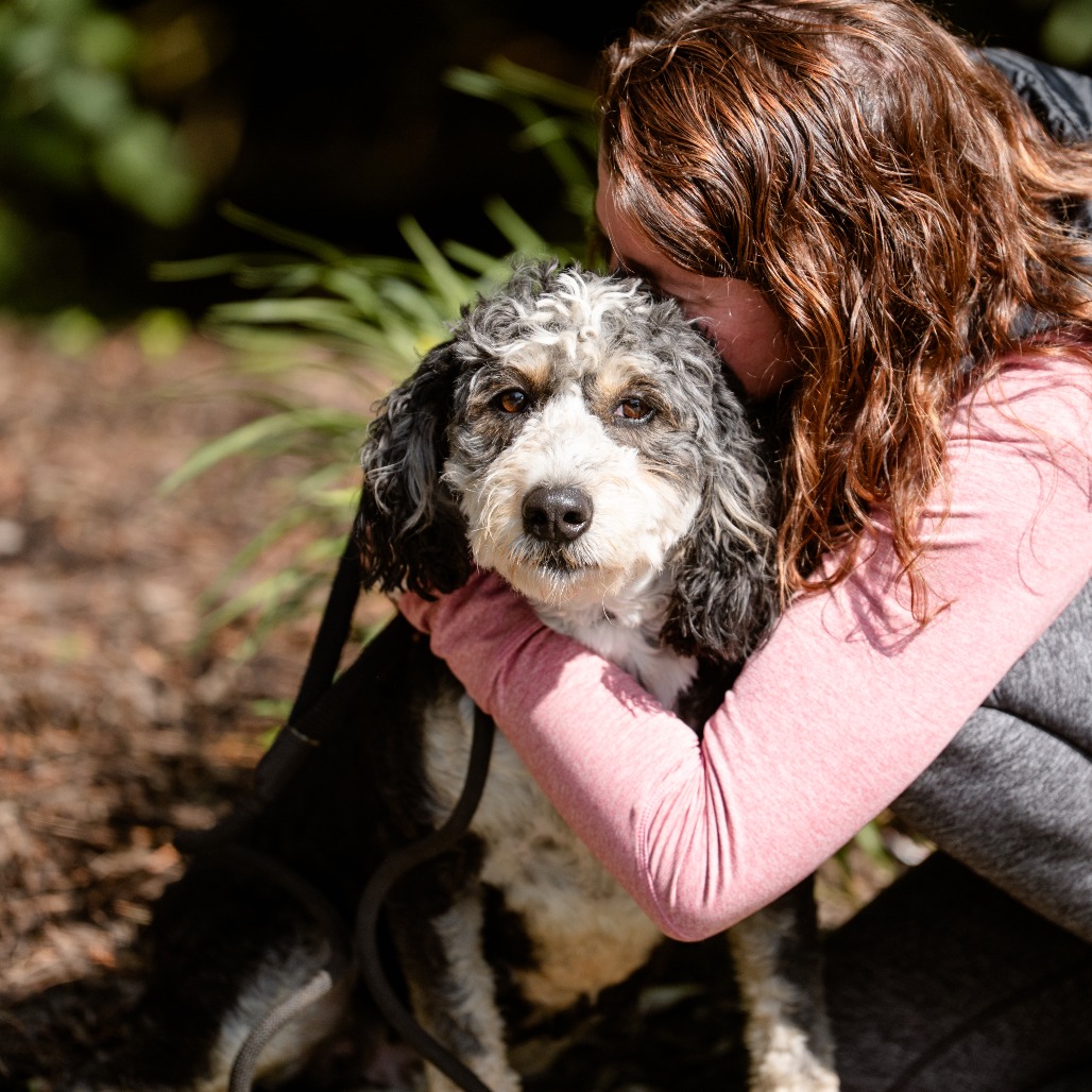 this sweetheart is an approx. 5 year old bernaddodle. She and 7 other doodles came to us our from a Lancaster breeder when they decided to no longer breed the dogs and were getting rid of their full "stock". She is right now 40 lbs and we were told she is a mini bernadoodle.