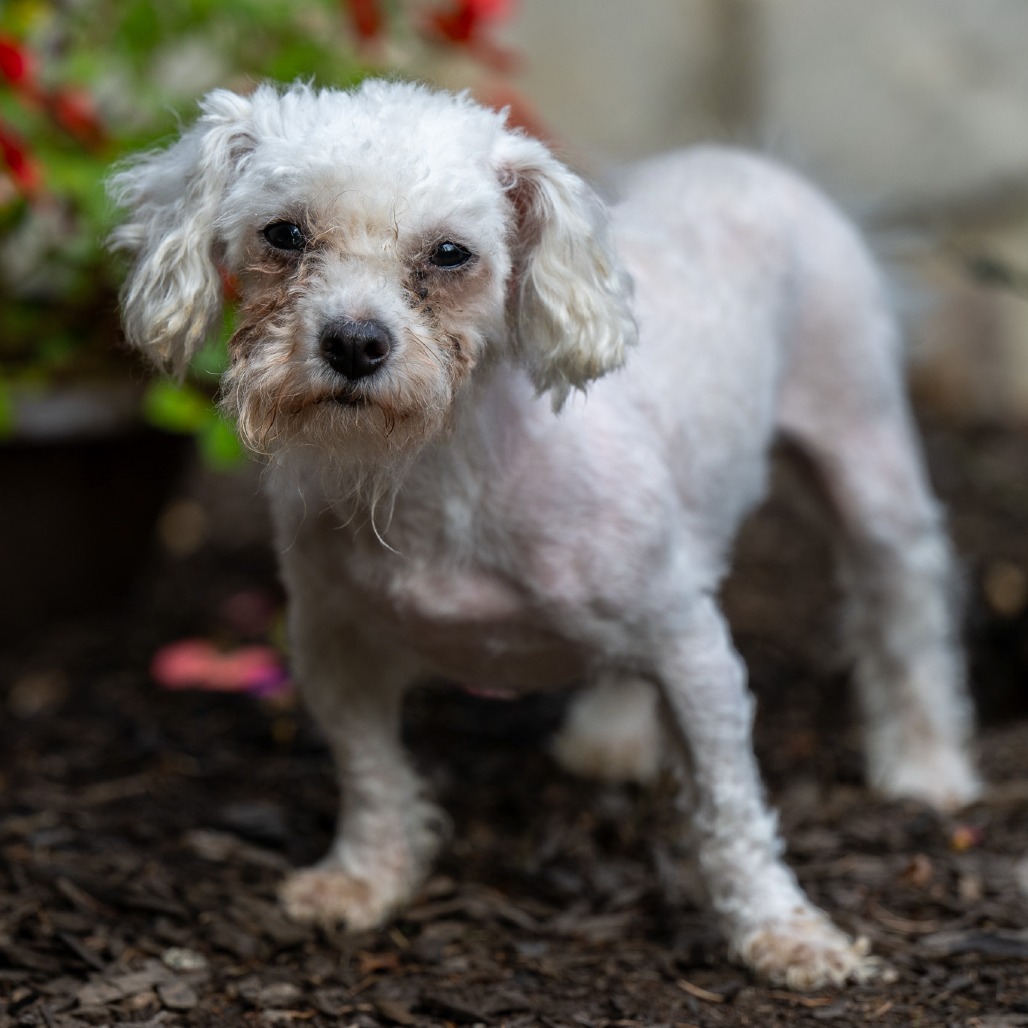 this sweetie is a 3 year old mix. She and several other dogs were surrendered to us from a commercial breeder when they no longer wanted them. The breeder told us she is a shih tzu. She is 8 lbs.