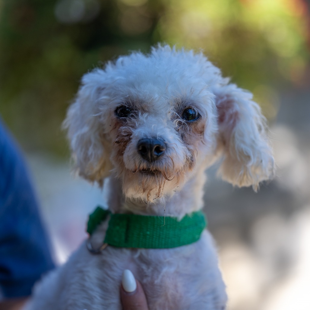 When she is not snoozing, you can find Esmeralda cuddled up with our volunteers. She is the cuddliest and sweetest little girl that thrives on attention from people. She has been absolutely wonderful with us and allows all handling, even sitting pretty through a full groom (as she came to us by matted). We are still cleaning up her face a bit, but despite the serious picture, she is the sweetest girl out there.