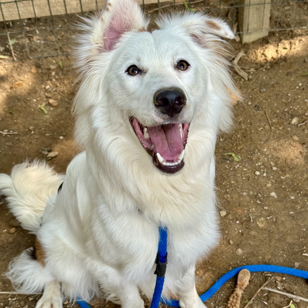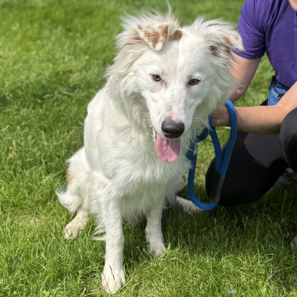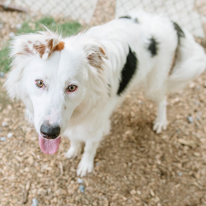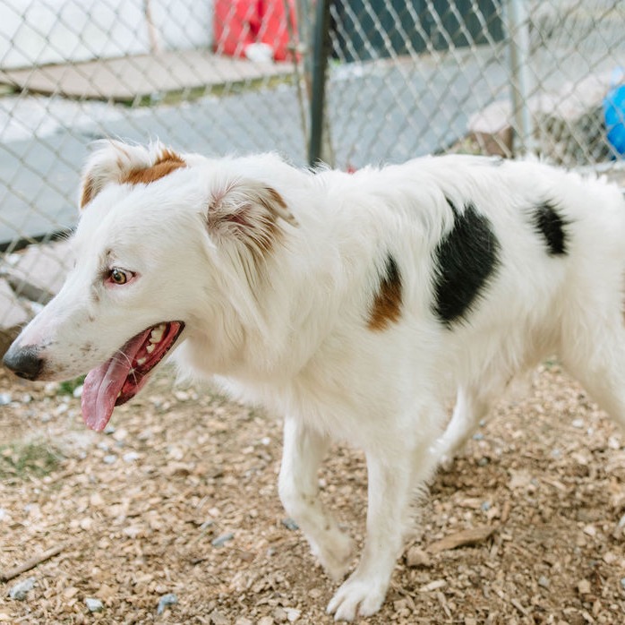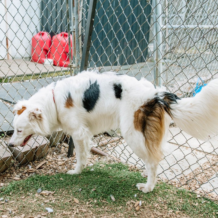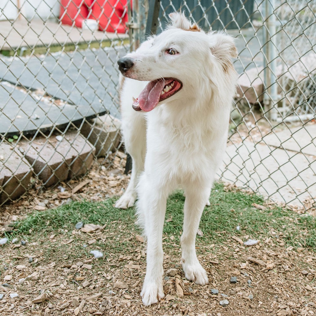 this smiling gentleman is a 4 year old mixed breed. While your guess is as good as ours, we believe he may be a border collie / borzoi mix. He was found as a stray by a good Samaritan in a park. When owners were unable to be located, he brought the dog to the local animal control shelter, where we found him. He is 40 lbs.