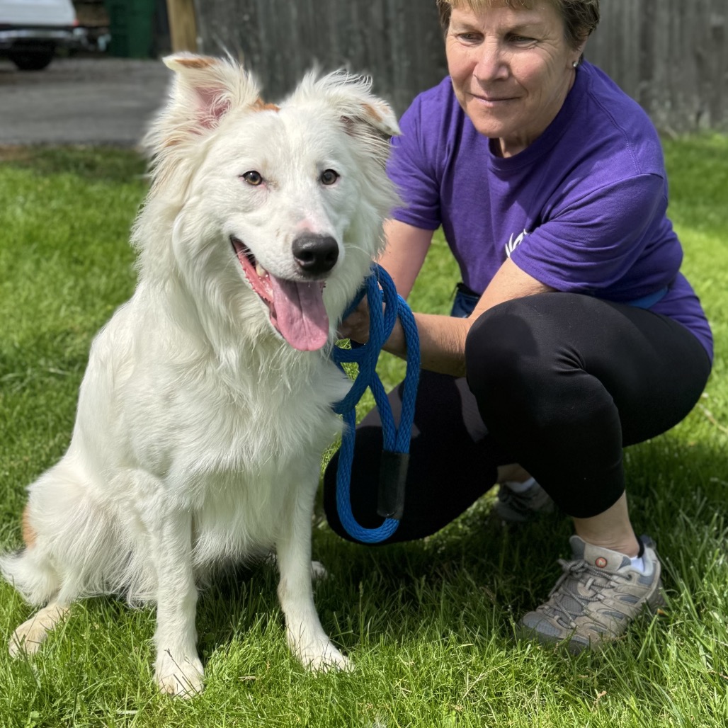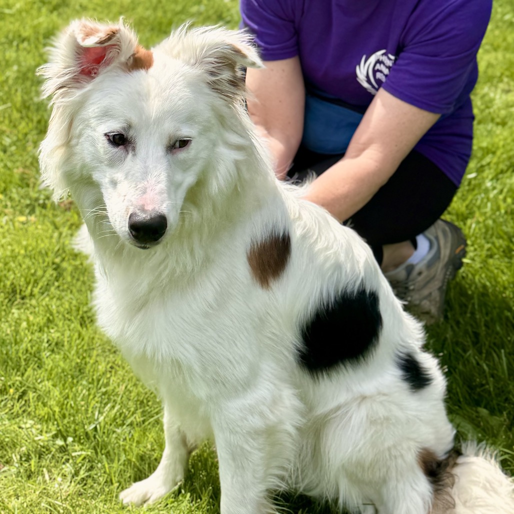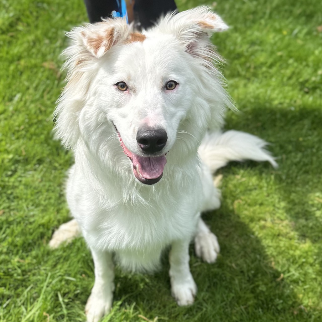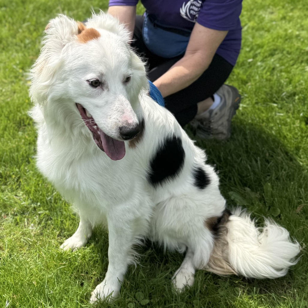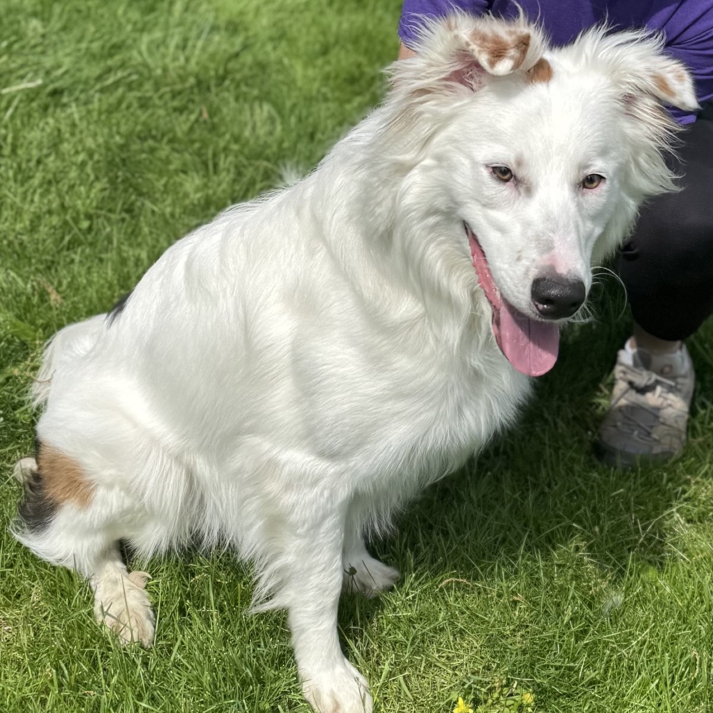 this smiling gentleman is a 4 year old mixed breed. While your guess is as good as ours, we believe he may be a border collie / borzoi mix. He was found as a stray by a good Samaritan in a park. When owners were unable to be located, he brought the dog to the local animal control shelter, where we found him. He is 40 lbs.