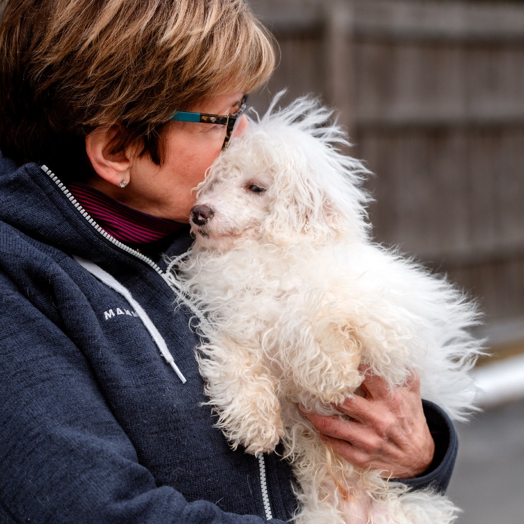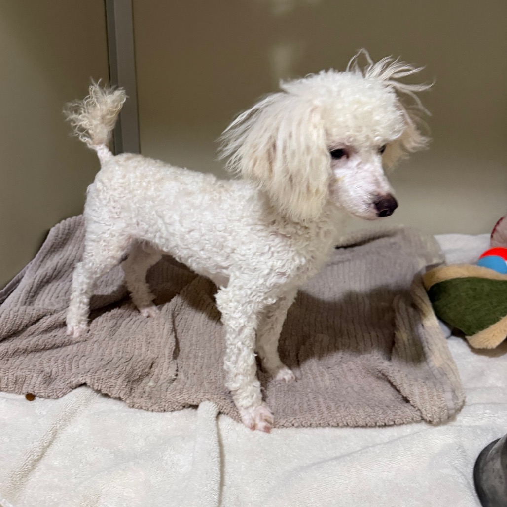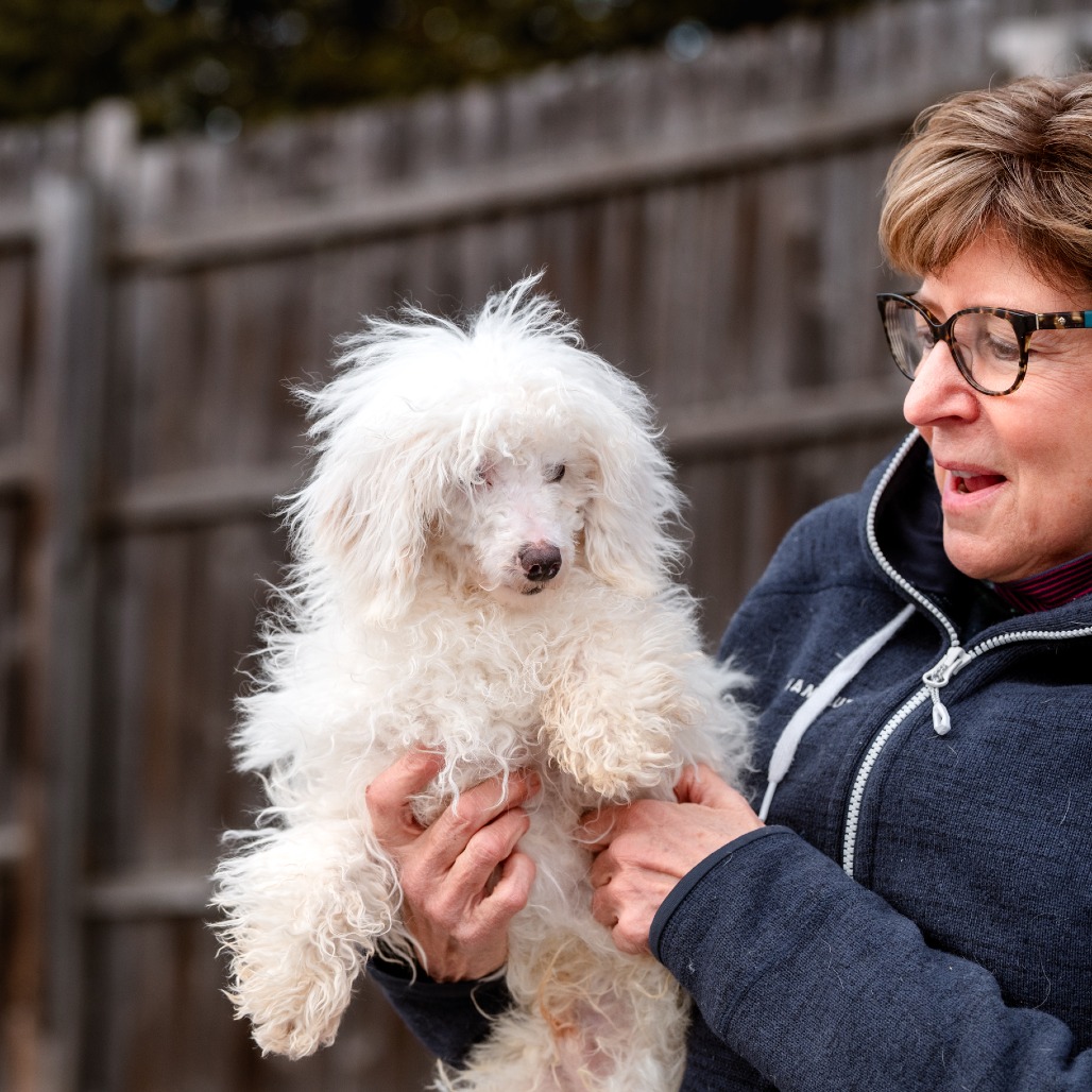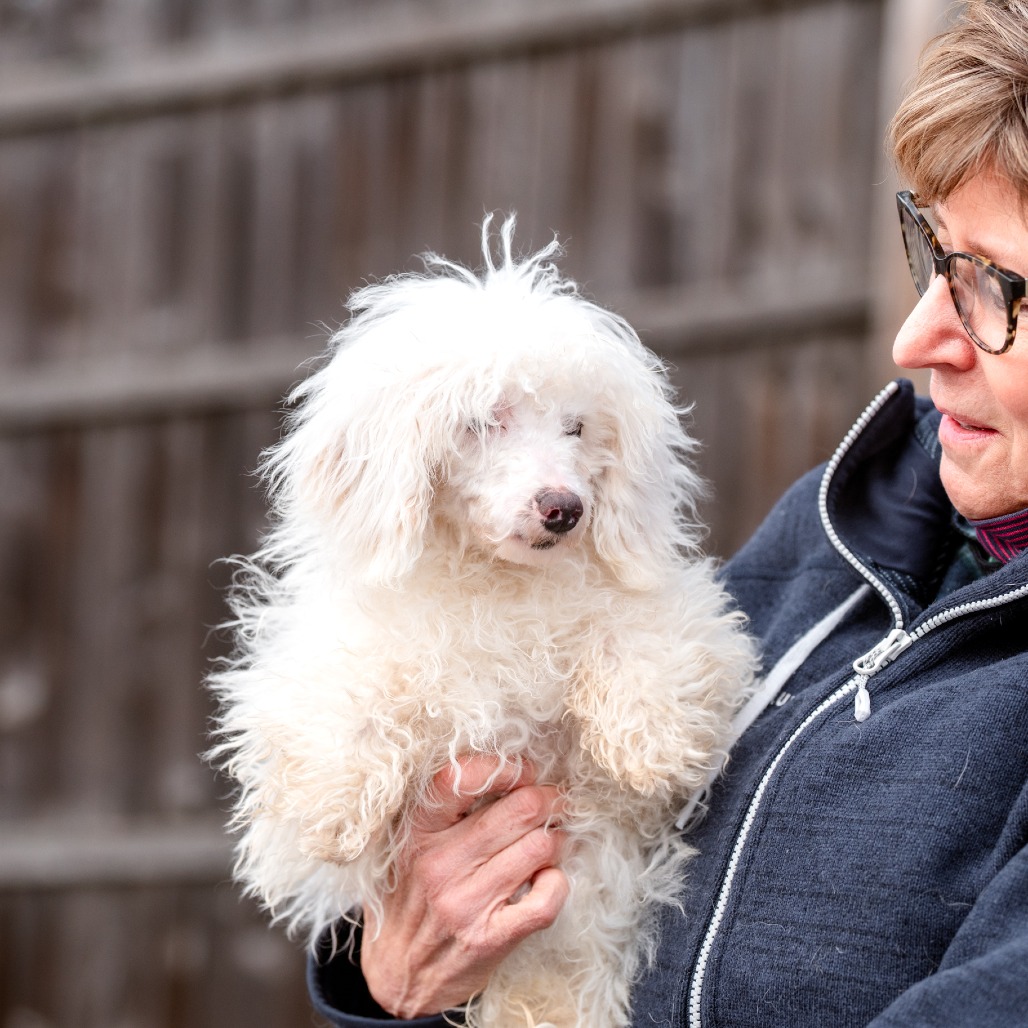 Grover is a 6 month old Toy Poodle who is a loving, curious and playful puppy who communicates primarily through body language and quickly learns visual cues. He came to us from a commercial breeder who could not sell him, as Grover is deaf.