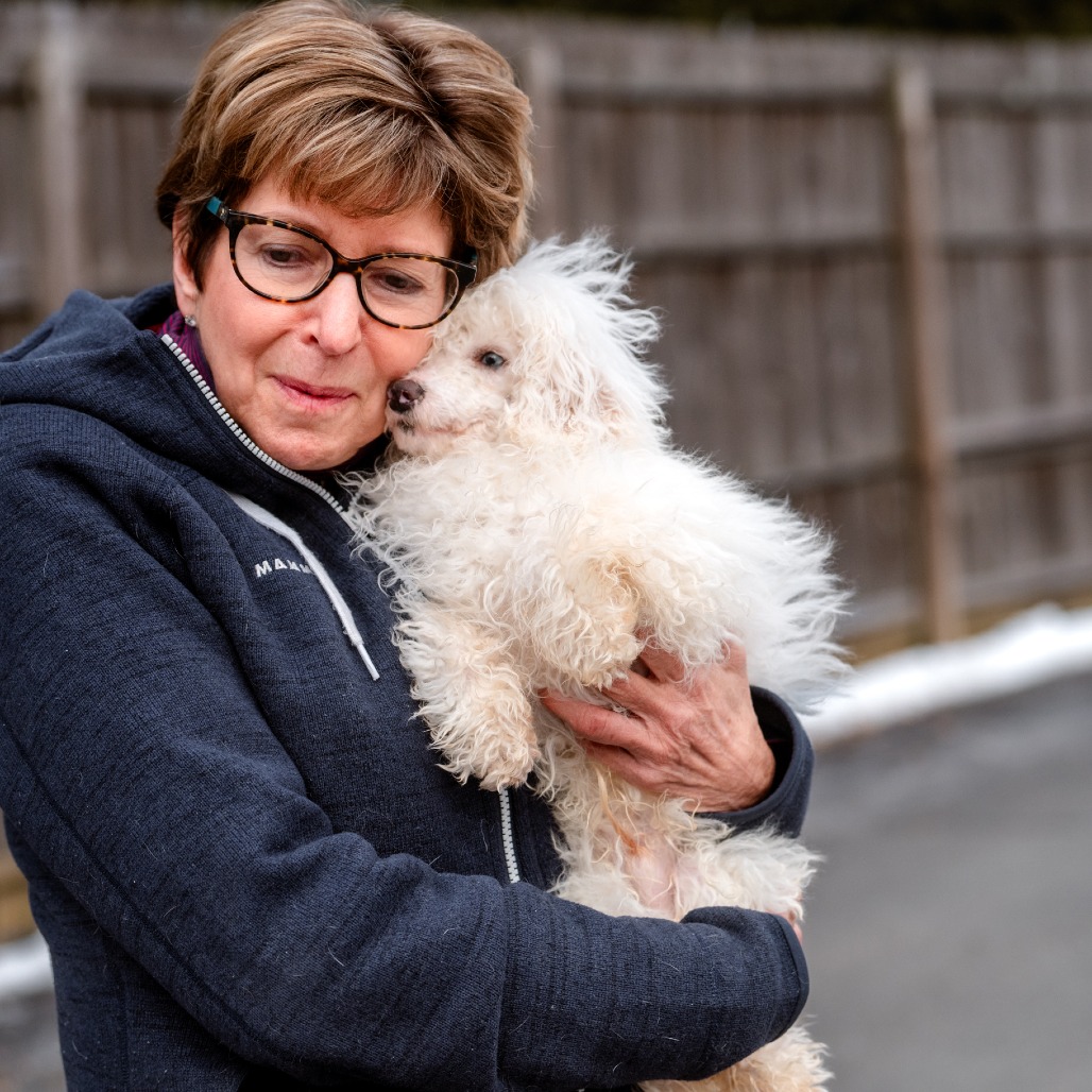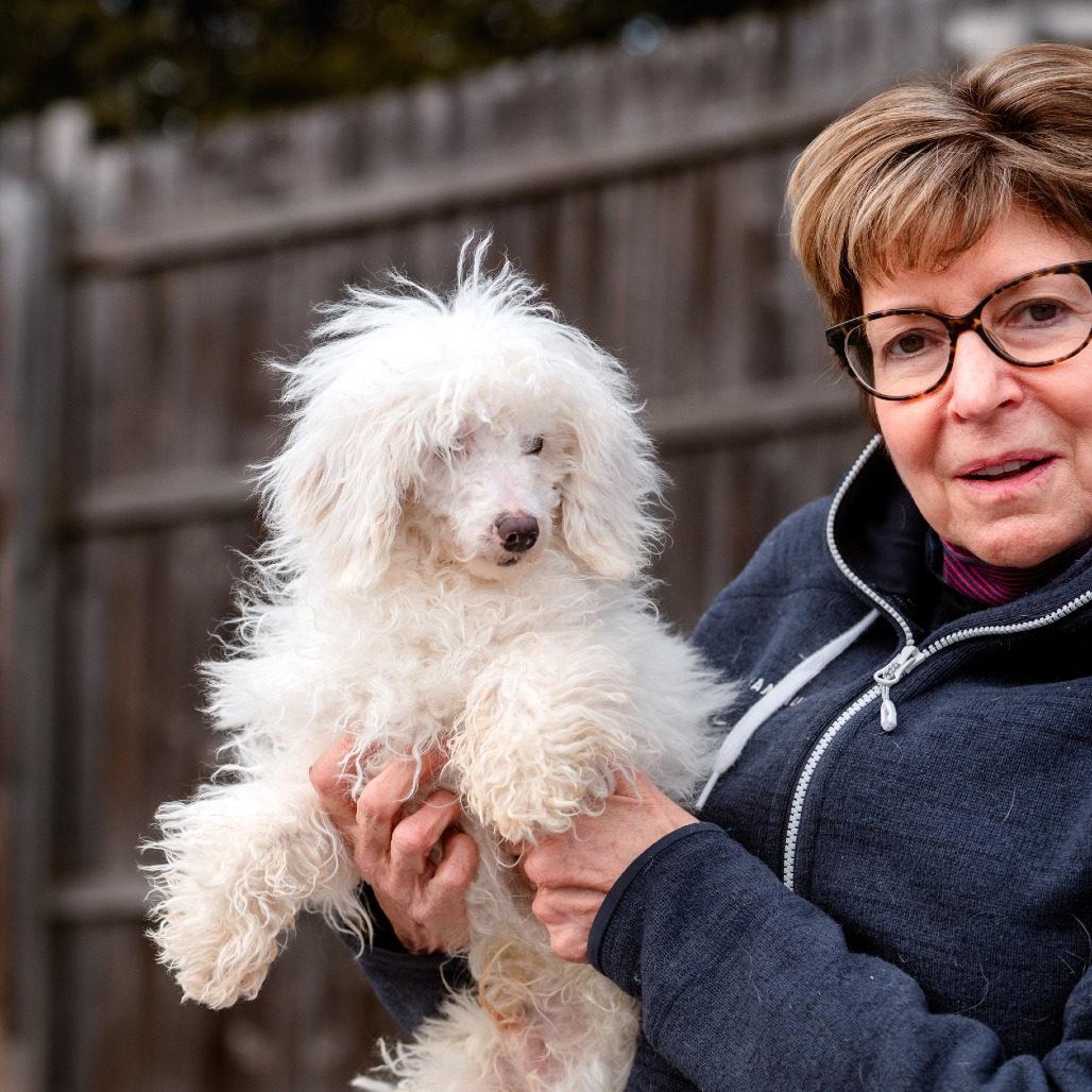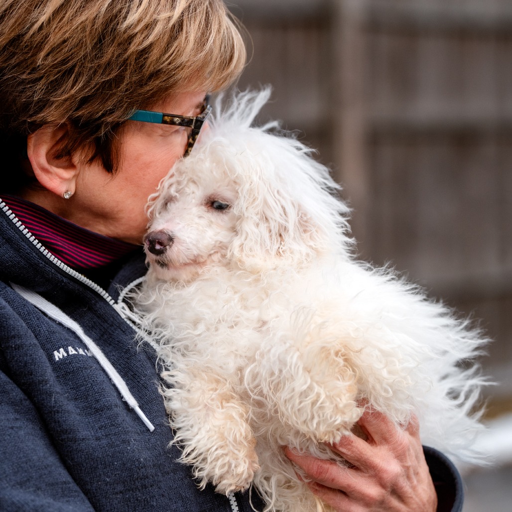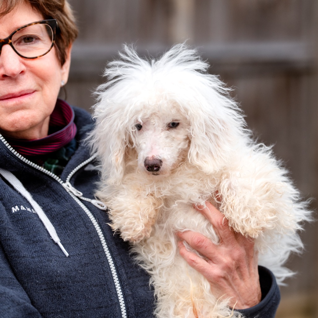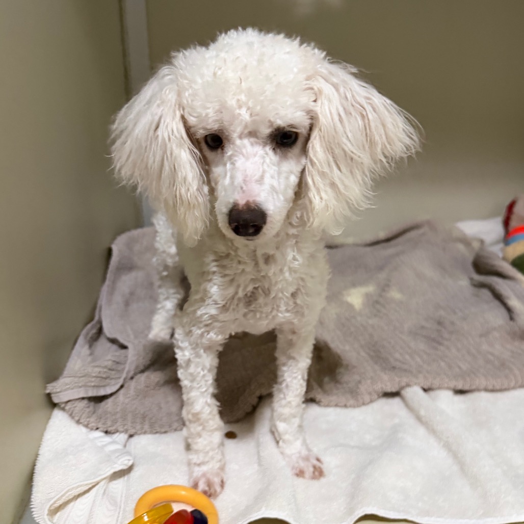 Grover is a 6 month old Toy Poodle who is a loving, curious and playful puppy who communicates primarily through body language and quickly learns visual cues. He came to us from a commercial breeder who could not sell him, as Grover is deaf.