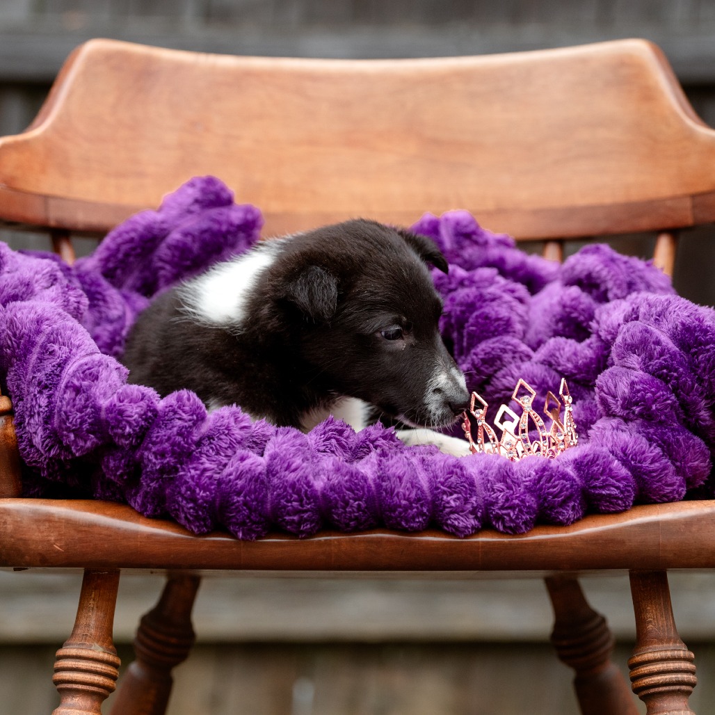 This group of 9‑week‑old Rough Collie / Border Collie mix puppies is ready to find their forever homes. All are black and white, currently weighing about 8–9 lbs, and full of everything you’d hope for in a young puppy.