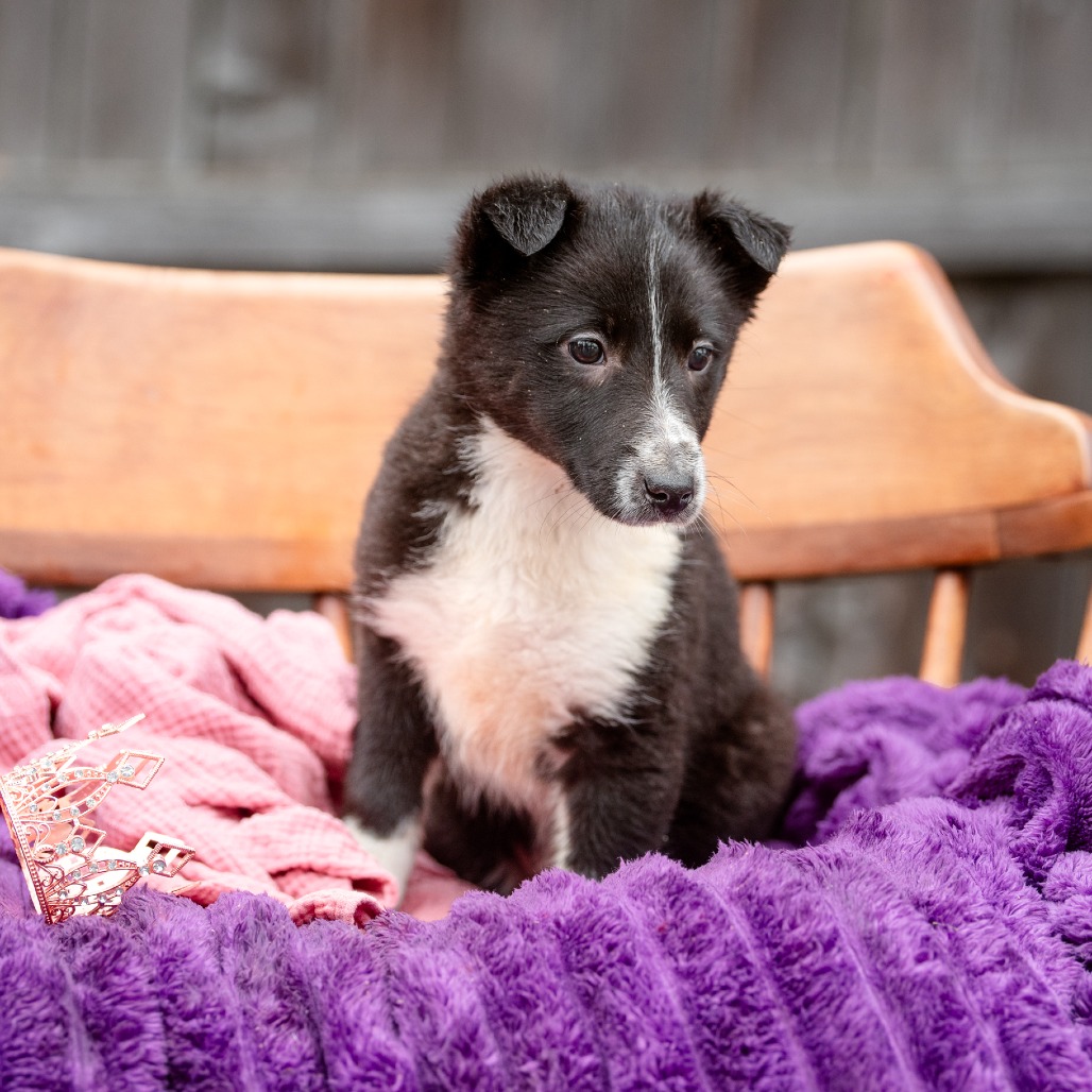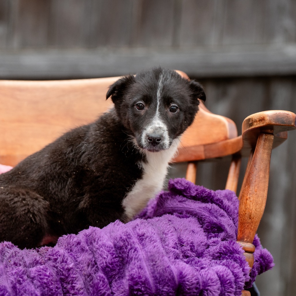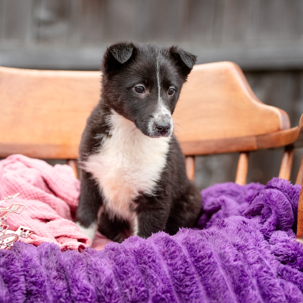 This group of 9‑week‑old Rough Collie / Border Collie mix puppies is ready to find their forever homes. All are black and white, currently weighing about 8–9 lbs, and full of everything you’d hope for in a young puppy.