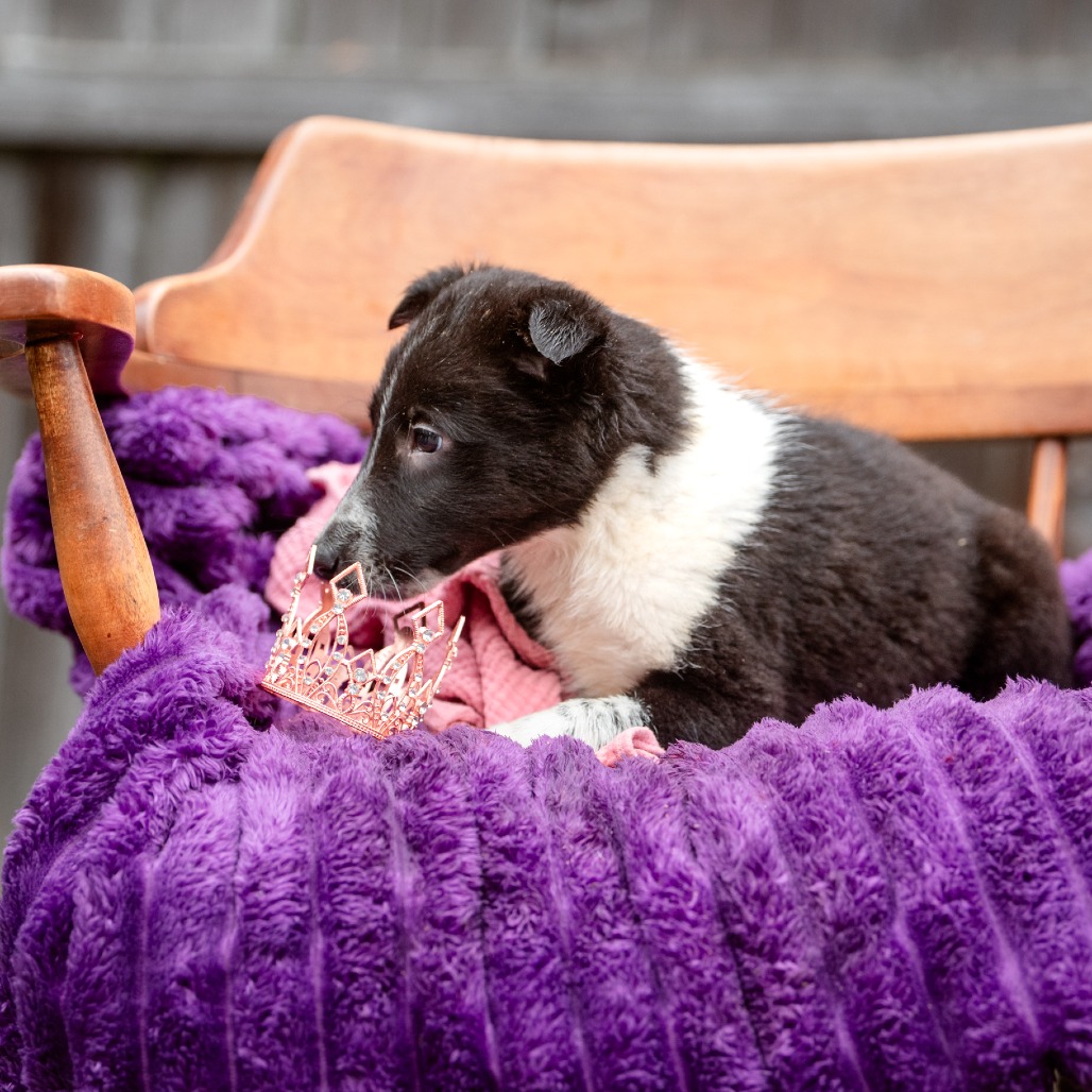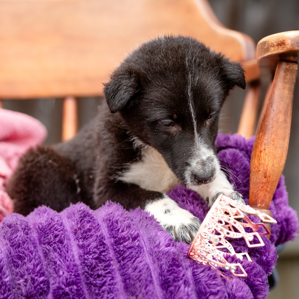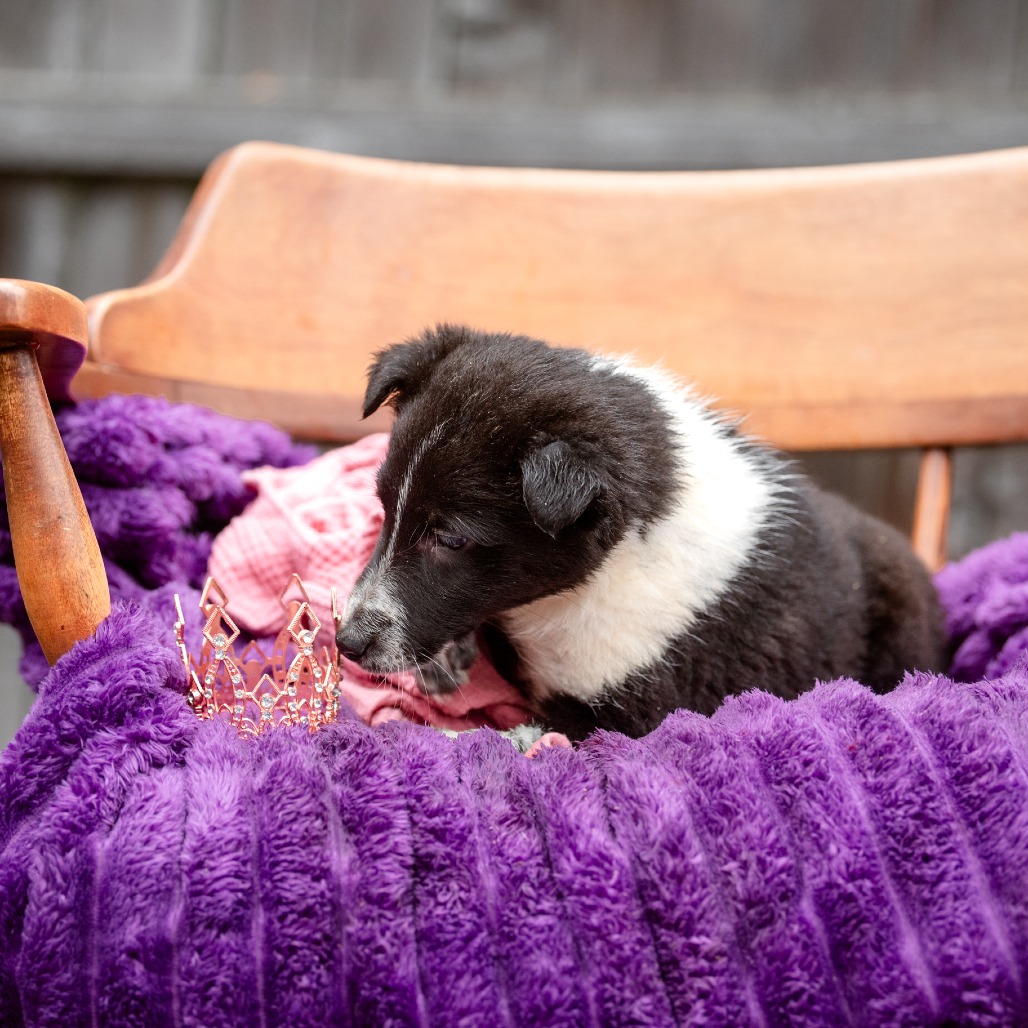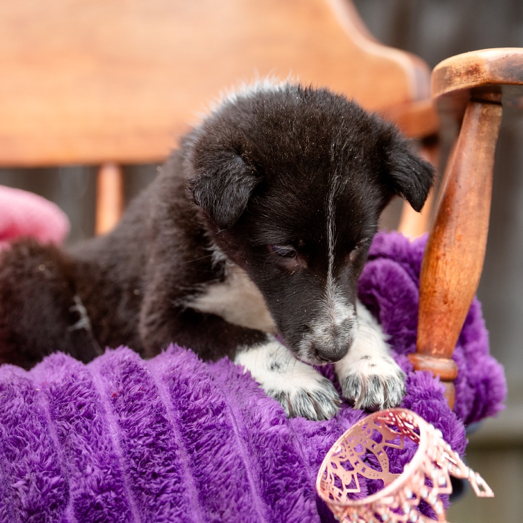 This group of 9‑week‑old Rough Collie / Border Collie mix puppies is ready to find their forever homes. All are black and white, currently weighing about 8–9 lbs, and full of everything you’d hope for in a young puppy.
