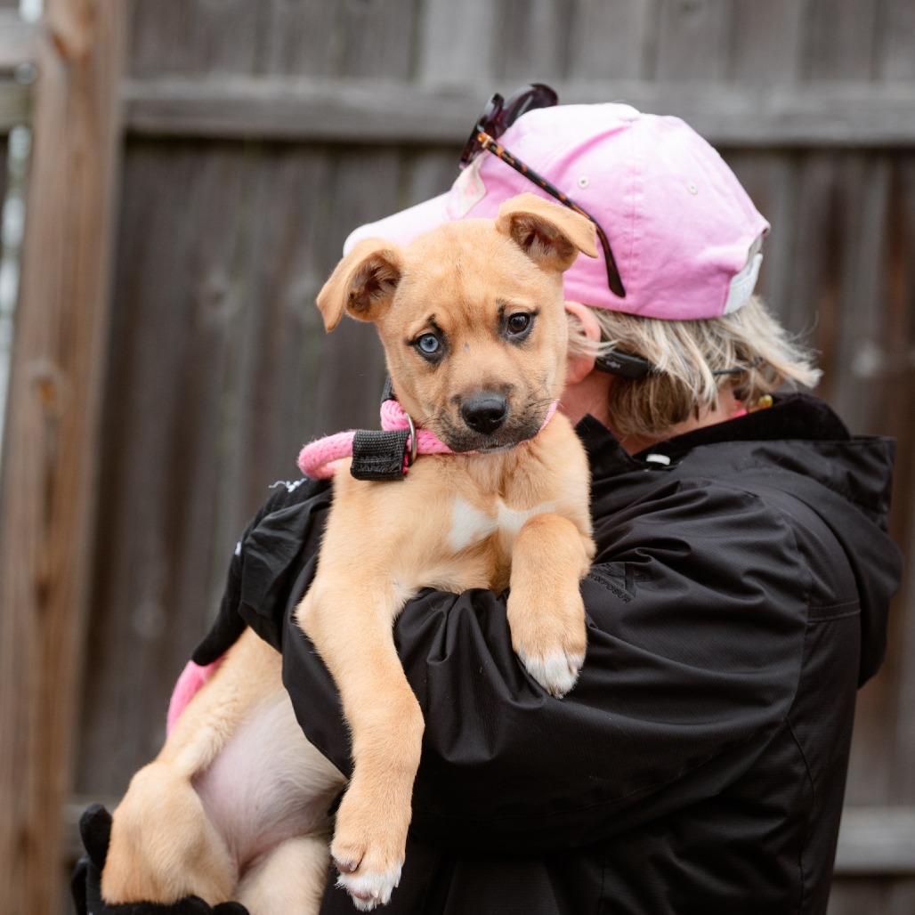 Our volunteers absolutely adore Pookie — she’s the kind of puppy who seeks out cuddles, happily makes new friends, and brings joy wherever she goes. She’s playful without being overwhelming and has that perfect mix of puppy energy and sweetness.