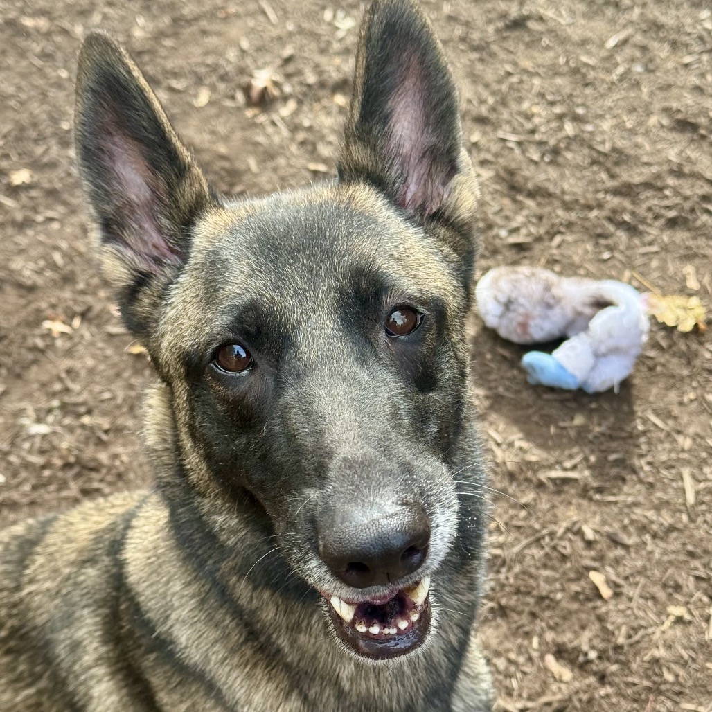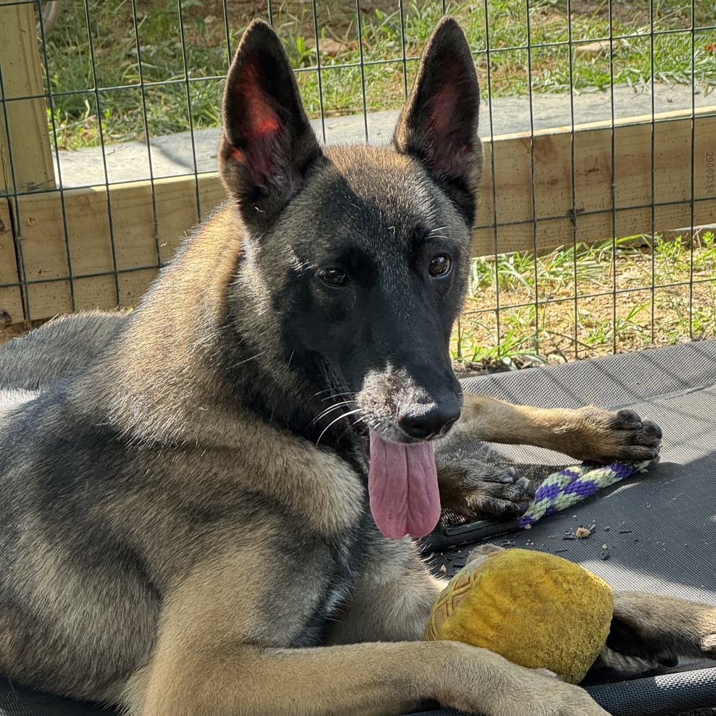 Skadi is a gorgeous Belgian Shepherd, approximately 3 years old, who came to us as a stray through our friends in Baltimore. While we don’t know much about her life before rescue, we’ve learned that she’s an absolute joy—smart, energetic, and full of love!