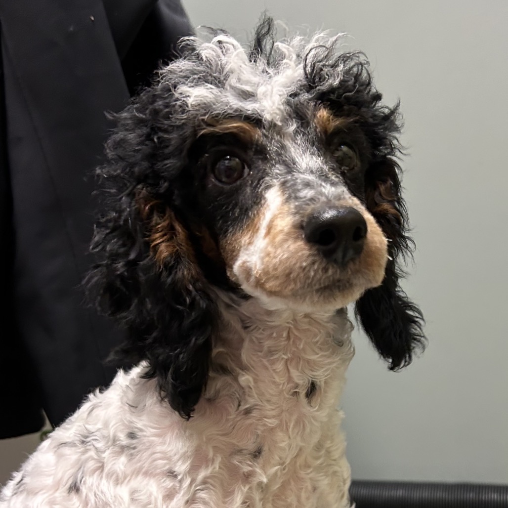 This good boy is a 7 pound, 3 month old toy poodle. He and several other dogs were surrendered to our care from a Lancaster puppy mill when they did not sell quickly enough.