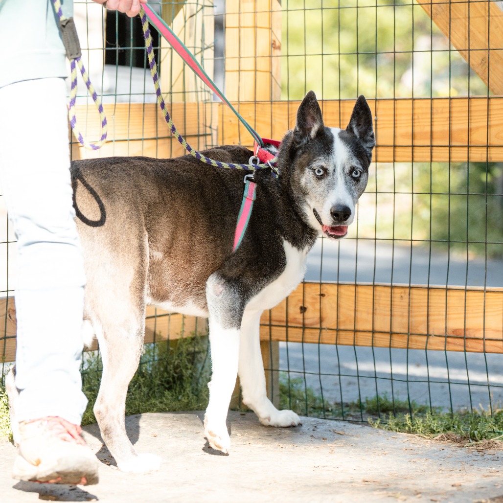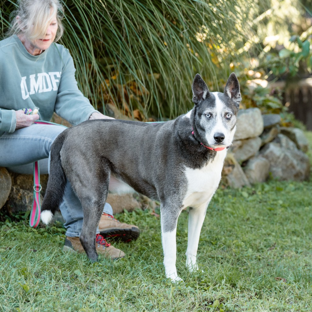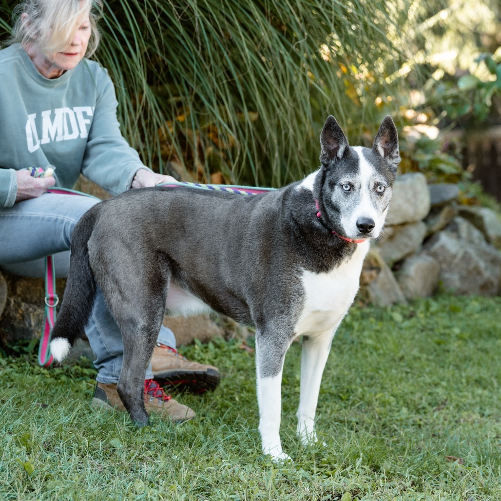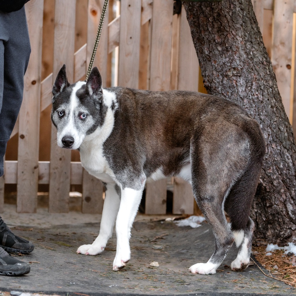 Tiberius is a 7½‑year‑old mixed‑breed gentleman with a calm presence and a soulful expression that hints at a life full of stories we may never know. While your guess is as good as ours, we believe he may have some Akita in him, both in looks and in his thoughtful, reserved nature.